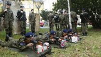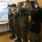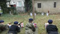 Skwerek przed szkołą przeistoczył się w plac ćwiczeń strzeleckich, na którym klasa 1. Logistyka wykonywała ćwiczenia przygotowawcze do zawodów strzeleckich i strzelań programowych.